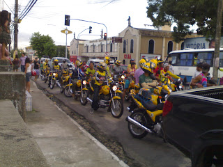 Todo mundo tem um daqueles dias iluminados ( ou de cão , em certos casos ) . Eu então tive uma tarde inspirada. Como vocês já sabem , em dia de quinta-feira ( assim como nas terças ) eu vou todas as tardes para a minha aula de música. Então nesses dias eu tenho tido tardes muito agradáveis, e outras bem doidas , digamos assim . Uma delas ( dessas tardes doidas ) foi hoje, quando faltando apenas 20 minutos para encerrar a minha aula de música, na qual o professor estava revisando os assuntos passados em aulas anteriores, houve uma confusão na rua em frente a nossa escola de música. Na verdade era uma manifestação dos mototaxistas, diga-se de passagem bastante ruidosa, que exigia ( como sempre ) a melhora e a regularização da profissão em nosso município. Isso acabou atrapalhando bastante a acústica do lugar onde estávamos e consequentemente prejudicou o restante da nossa aula. Pra completar , anteriormente a todo esse tumulto havia vindo uma equipe de reportagem da SBT para fazer uma entrevista com o nosso professor, em pleno horário de aula. Então já viu , confusão armada. Mas os alunos souberam contornar com classe tudo isso, por mais que tenhamos sido obrigados a ser liberados com 10 minutos de antecedência mediante a tudo isso. A , uma coisa bem legal que ocorreu esta tarde , é que quando eu estava na área de venda de discos de uma farmácia aqui da minha cidade, eu vi uma coisa que nem eu mesmo acreditava estar vendo naquele momento . Era nada mais nada menos que o " Black Album " ( O Álbum Negro ) , o álbum que a banda Metallica havia lançado no ano de 1991, a quase 20 anos atrás, e que vendeu praticamente 30 milhões de cópias legalizadas no mundo todo. Ou seja , era uma raridade, e o melhor de tudo : ninguém havia comprado ele. Era ou não era eu um sortudo? O porém é que eu não tinha os 40 reais necessários para comprar o tal CD . Uma pena . E pra completar eu até me esqueci de bater uma foto. Mas que droga eu sou ... Sim , mas pulando essa parte , vamos as fotos do protesto dos mototaxistas da minha cidade. Estas são apenas algumas que eu tirei no momento do protesto. Foi quase um impulso . Acho que é a veia jornalística falando mais alto. Nem eu sei...